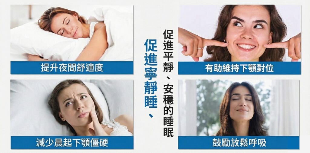 - 睡眠時打呼磨牙減少,口腔更舒適。