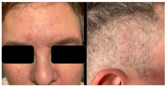 所以在過去三年多裡,我又回頭做著和 2016 年時同樣的事情。因為我記起這套方法真正運作的原理。在這段時間中,我真的每天都親眼看見、親身感受到自己的身體一點一滴地被重新塑造。隨著顱骨一直在慢慢往外擴張,我每天都感覺頭皮和臉部的組織被撐開一點點。上面放的照片是大約一年前某次的樣子……而差不多這種情形幾乎每天在我做完下巴伸展運動後都會出現。