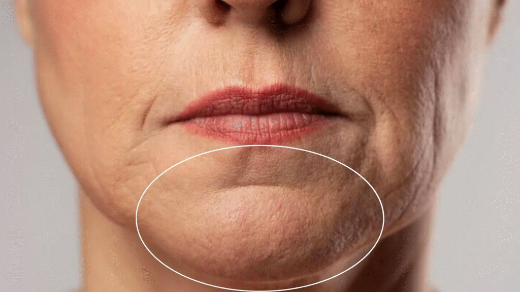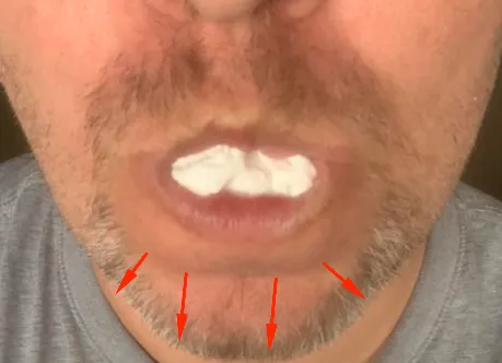 當我把一張紙巾頂在下唇下面時,下巴底部會形成一道「摺痕」。那條線基本上就代表了你還能走多遠的進步空間。我們的目標就是把這條線一路推到下巴兩側的邊緣。