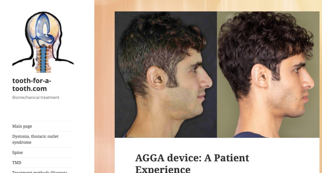 不久前,我偶然瞥見了一個名字,讓我想起過去在討論區活躍的一號人物 —— Ronald Ead。記得好多年前,Ronald 很高調地去嘗試了一種叫 AGGA(前向生長引導裝置)的療法,一種透過移動牙齒的位置來達成目的、非常激進的矯正裝置。後來據我所知,他發現這療法對自己造成了傷害,而 AGGA 的創始人最後也吃上了官司,被告得很慘。當時 Ronald 的故事被 tooth-for-a-tooth 網站詳細記錄下來。