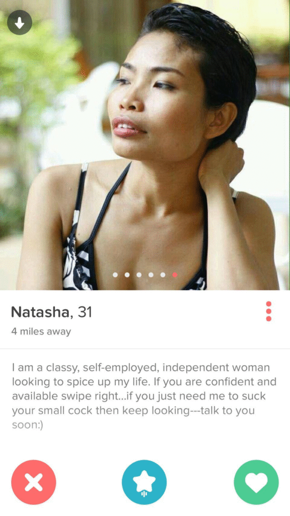 話說回來,其中一位朋友打開他的 Tinder 給大家看,秀出幾個他正在聊天的對象。我當下的反應就是:「你瘋了嗎?這些女人大多都不太行耶!」當然,我關注的重點跟他看的完全不同。