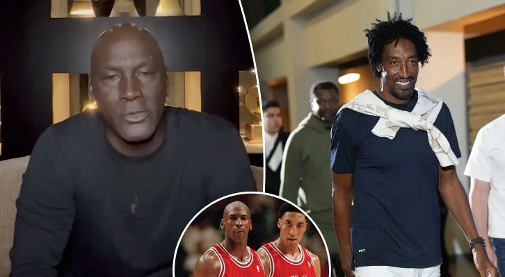 麥可·喬丹今昔對比——很明顯,喬丹老化的速度比皮朋快得多。