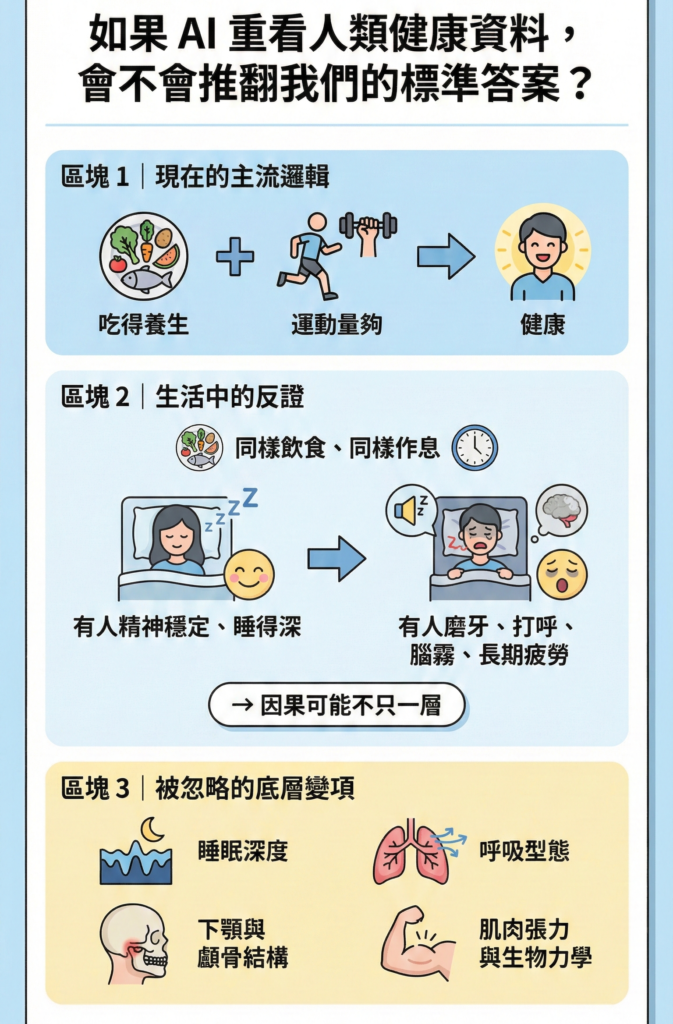 然而,如果 AGI 真能把世上所有資料都爬梳一遍,包括人們在不同人生階段的照片、他們患過的疾病,以及牙齒、顱骨與身體之間的種種關係等等,我幾乎可以肯定:總有一天,它得出的結論將會和我現在的結論大致相同。為什麼我這麼有自信?因為我的這些結論是建立在長達將近十年的觀察和邏輯推理之上,而在這個過程中我刻意屏蔽掉了社會上流傳的那些似是而非的陳詞濫調。