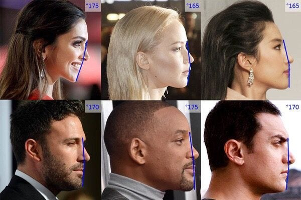 你有看過一個人臉非常對稱,卻完全沒有側面輪廓嗎?沒有,我敢說這種人不存在。因為沒有側面輪廓就意味著顱骨在某種程度上錯位了。相反地,如果真的是骨頭沒長夠,那理論上你應該會看到有人臉蛋對稱漂亮,但側面幾乎沒有輪廓——而在我過去十年裡,我一次都沒見過這樣的例子。同樣地,側臉輪廓好看的人必然伴隨著良好的面部對稱度。兩者其實是硬幣的兩面,因為都反映了顱骨處在正確的位置上。