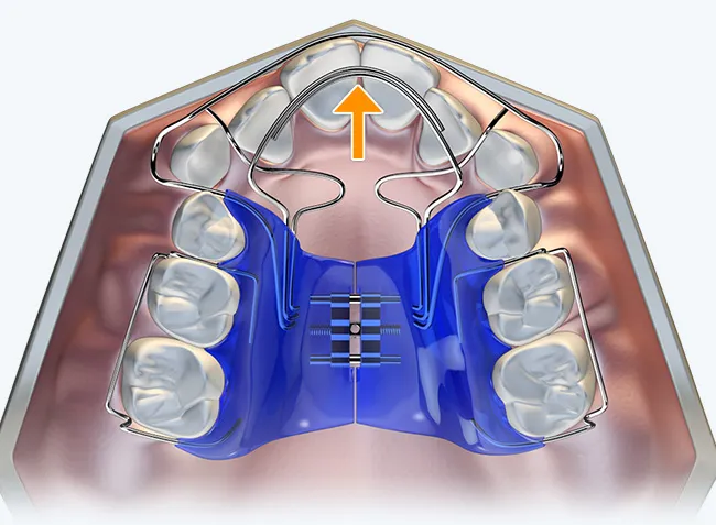 真正的解方不是硬生生把上顎撐開——而是順應軟組織的力量,讓它來引導自然的擴張。只要在上下牙齒之間增加適當的垂直空隙而不鎖死下巴的位置,這種自然的擴張反應就會自動發生。