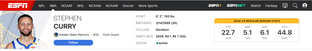 他的投籃命中率仍舊名列前茅,無球跑動和自行創造投籃機會的能力也絲毫未減。試想,他從2009年進入NBA至今已打了16年,一直以高強度、需要不斷跑動和頻繁身體對抗的風格征戰球場。大多數球員通常在三十出頭就開始走下坡,尤其是那些仰賴速度和靈活性的後衛;然而,打了16個賽季的柯瑞仍然維持著巔峰水準,這點實在令人驚嘆。