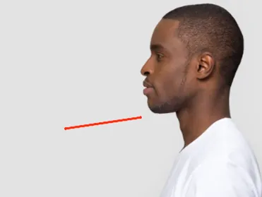 那麼,再找找那些側面輪廓非常好的人,比如說下巴線條從頸部斜向下延伸、輪廓清晰的人。通常下巴線條從脖子斜斜延展下來,意味著他的脊椎非常健康;相反地,脊椎彎曲變形的人,下巴線條往往就不明顯。