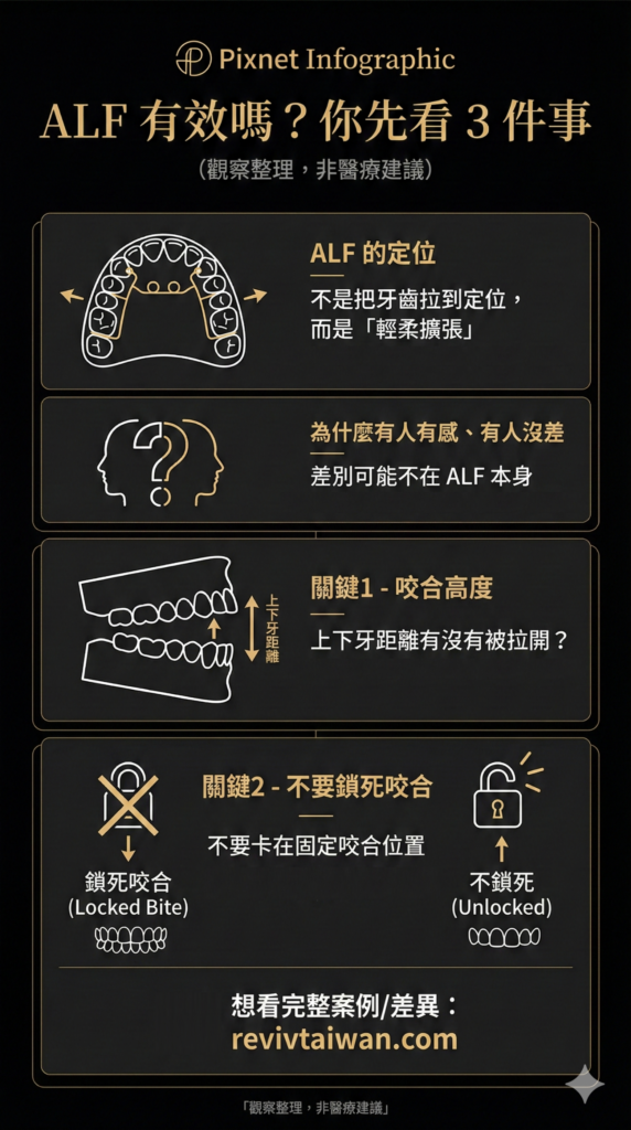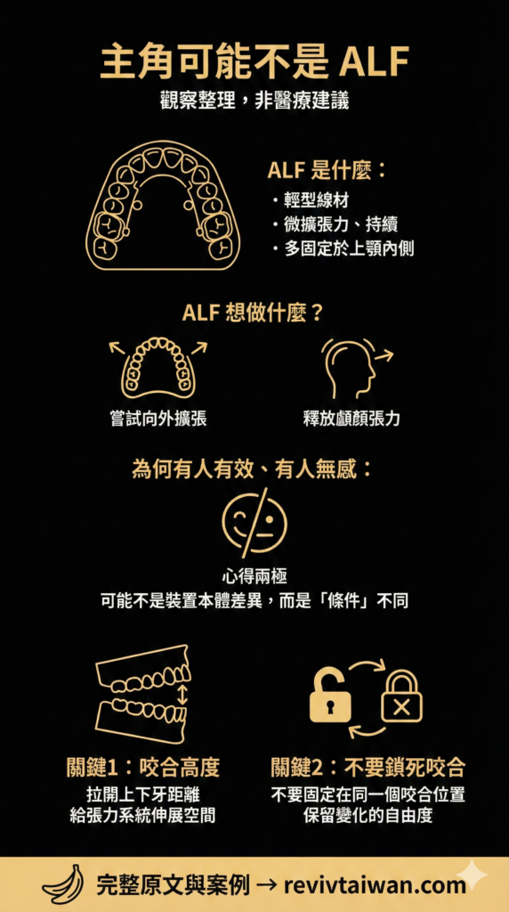 ALF 是一種流行的輕型線材功能矯正器,設計目的是對頭骨施加持續且擴張的力量。