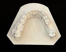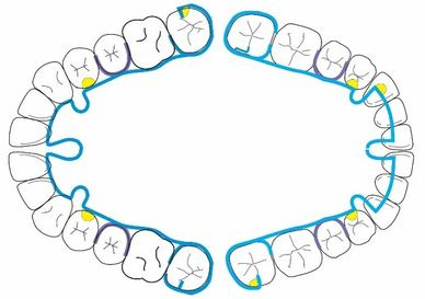 隱形 ALF 的設計只有一根金屬細絲固定在上排牙齒上,並利用第二顆臼齒作為支點(如上圖所示)。至於下排牙齒,我基本上戴了一個牙托,僅讓最後一顆牙齒有平坦的接觸面。Hurme 醫師同時也給了我人生中的第一個 Myobrace (型號 A1,如下圖所示)。