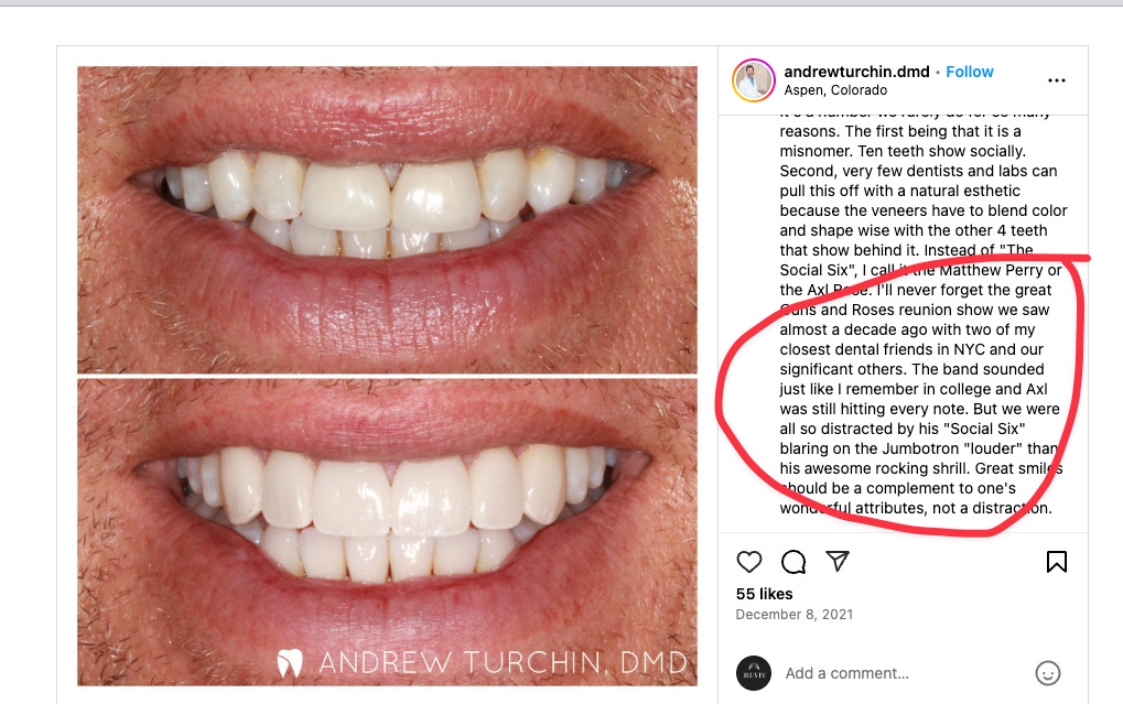 有一位牙醫觀察到,2010 年前後 Axl 出現了所謂的「Social Six」——意思是他上下排最前面的六顆牙都裝了貼片。