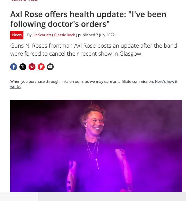 這些年來,Rose 也飽受各種健康問題的折磨,其中一些甚至迫使他取消了演出和巡迴。