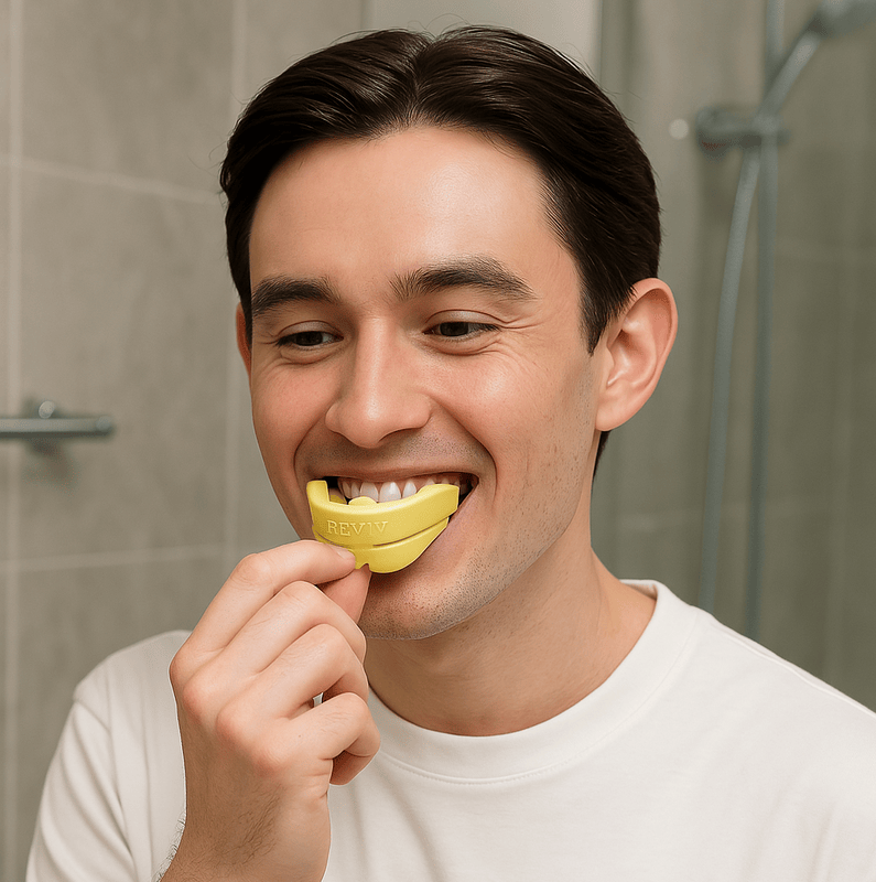 Reviv 護齒套會在您睡覺時於牙齒之間形成一道保護層,降低咬緊牙關與磨牙的影響;這些行為可能導致牙齒磨耗並讓下顎肌肉更緊繃。改善這些因素後,許多使用者回饋更舒適,整體生活品質也有所提升。